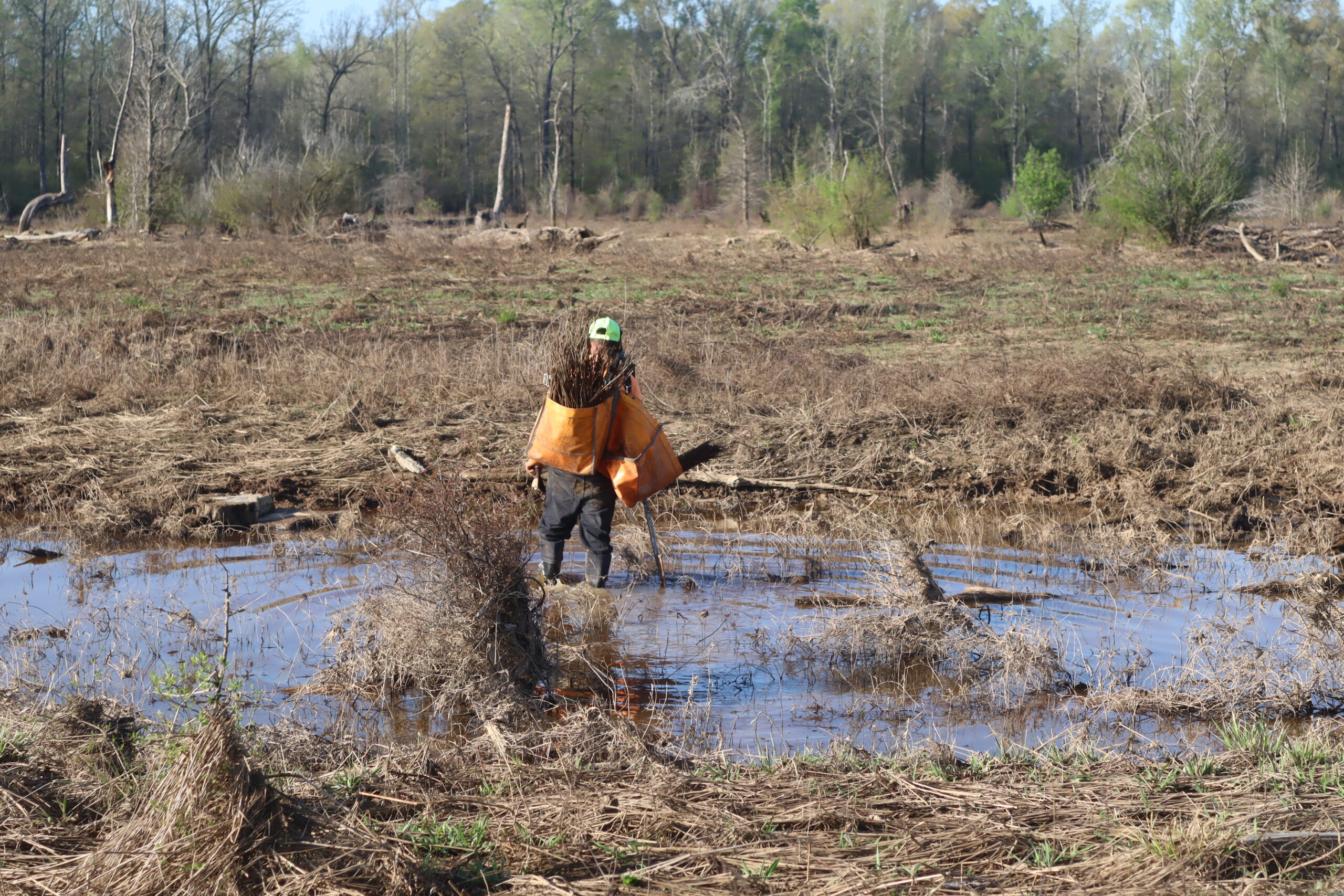 We manage invasive plants like Chinese tallow, cogongrass, and water hyacinth, along with animals such as feral hogs and nutria rats. These species damage wetlands and forests by displacing native vegetation, disrupting water systems, and degrading habitat. Removing invasives restores balance, supports native wildlife, and protects the long-term health of the land.